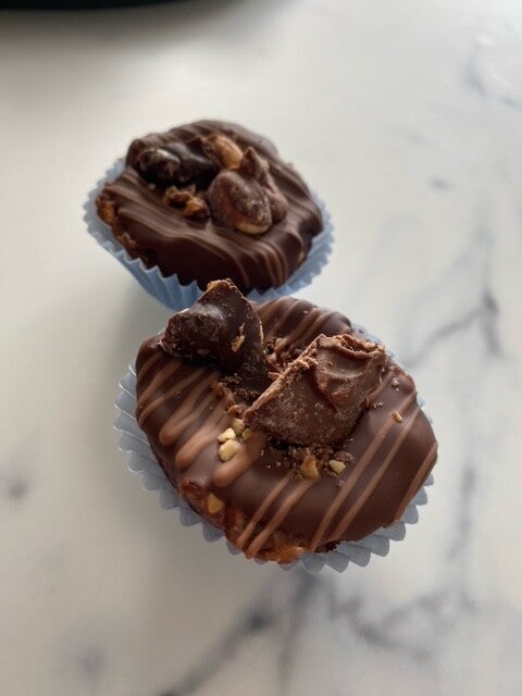 Voor de echte liefhebbers van noten en chocolade is er de Nutty Nutella Dadelcup! Deze heerlijke cup combineert zoete dadels met krokante melk- en pure pindarotsjes. De romige Nutella-vulling vormt het hart van deze traktatie, terwijl de bovenkant bedekt is met een rijke mix van pure en melkchocolade, afgemaakt met een knapperig stukje pindarots.