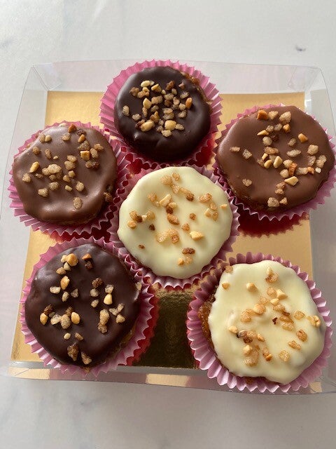 Onze ChocoLover box is gevuld met 6 DadelCuos vol chocolade-vulling, cookie crumble en een laagje melk, wit of pure chocolade.